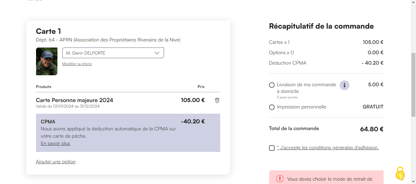Carte départementale 85€ + Carte APRN sans le CPMA 64.8€ = 149.8€